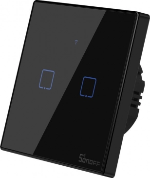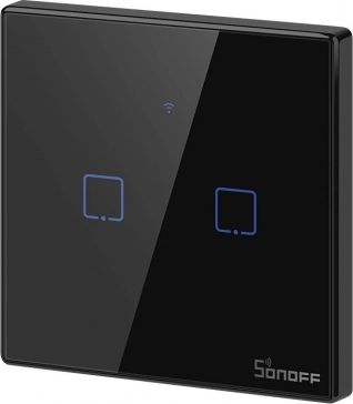 Interrupteur tactile intelligent SONOFF T3 EU, Wi‑Fi + RF 433, 2 canaux, noir