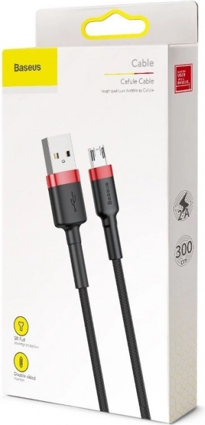 Baseus Cafule câble micro USB tressé 3 m, 2 A (noir‑rouge)