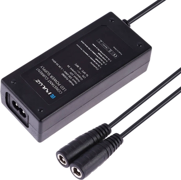 Adaptateur d’alimentation Puluz pour tente photo 60 cm, 12 V/3 A, avec variateur de luminosité et protection contre les courts-circuits et les surcharges. Solution fiable et sûre pour la photographie de produits.