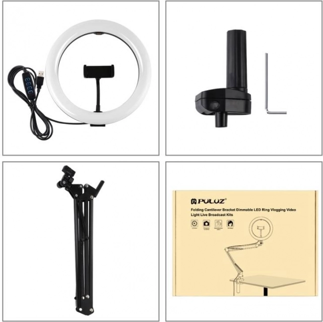 Support d’épaule Puluz avec anneau lumineux LED de 26 cm