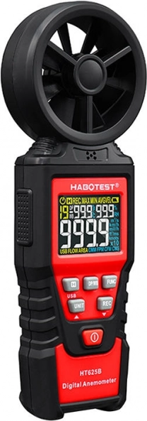 Le HABOTEST HT625B est un anémomètre fiable doté d’un rotor à huit pales et d’un capteur à roulements sensible pour des mesures stables et rapides. L’écran couleur haute résolution affiche jusqu’à 9999 counts, avec indication de la batterie. Vous pouvez choisir parmi plusieurs unités de vitesse (m/s, km/h, mph, ft/s, nœuds) et de débit d’air (CFM/CMM/CMS), ce qui vous permet d’adapter facilement l’appareil à vos habitudes de travail.