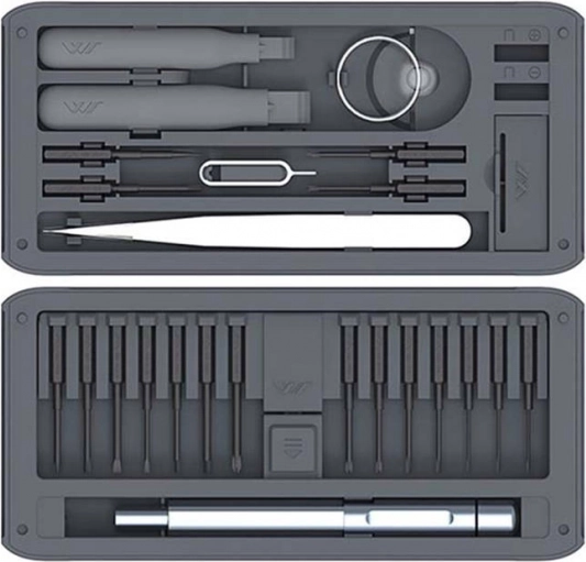 Le coffret comprend également une pince en acier inoxydable, des leviers en plastique, une ventouse et une aiguille pour carte SIM – idéal pour l’entretien des téléphones, ordinateurs portables, montres et petites réparations domestiques.