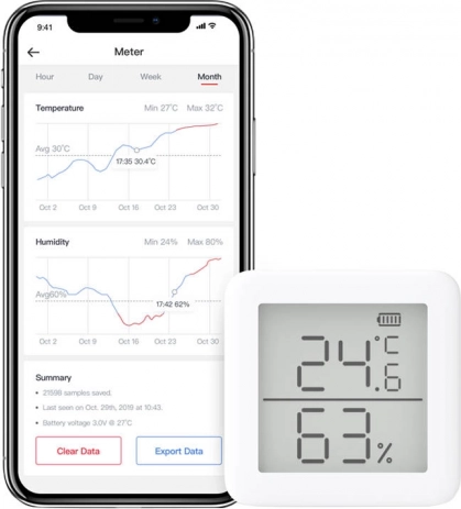 Connectez l’appareil via Bluetooth à l’application SwitchBot, suivez un historique jusqu’à 5 semaines (ou illimité dans le cloud avec un hub), exportez les données en CSV et recevez des alertes intelligentes.