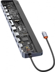 Étendez votre ordinateur portable avec jusqu’à 12 ports grâce au hub BASEUS EliteJoy Gen2 12‑en‑1. Vous obtenez 2× HDMI jusqu’à 4K, DisplayPort 4K/60 Hz, 3× USB 3.0 (500 Mo/s), USB‑C données, charge PD 100 W, RJ45 gigabit, lecteur SD/TF et audio 3,5 mm. Le corps en alliage d’aluminium avec silicone sert aussi de support incliné à 8° pour une frappe plus confortable et une meilleure ergonomie.