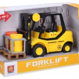Le chariot élévateur jaune et noir est un complément parfait à toute collection de jouets pour enfants. Ce modèle est destiné aux conducteurs habiles qui apprécieront sa partie avant mobile adaptée au levage de palettes.
