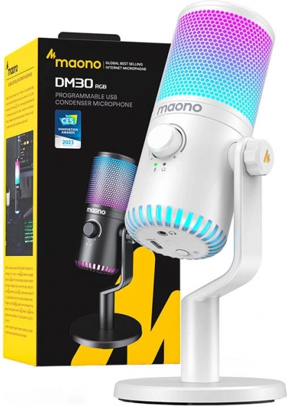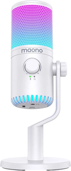 microphone de jeu maono dm30 rgb – microphone usb blanc avec rétroéclairage rgb