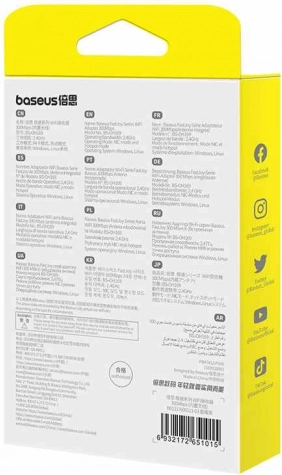 Le compact adaptateur Wi‑Fi BASEUS FastJoy offre une connexion sans fil stable jusqu’à 300 Mb/s sur la bande 2,4 GHz. Grâce à son antenne 6 dBi, à la technologie CCA pour réduire les interférences et à l’installation facile plug & play, profitez d’un Internet fiable pour le travail, le jeu et le streaming. Il prend en charge le chiffrement WPA/WPA2, fonctionne sous Windows et Linux, et son indicateur bleu signale l’état de la connexion.