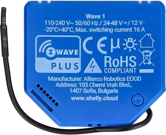 Shelly Wave 1 est compatible avec un large éventail d’autres appareils Z-Wave™, ce qui permet une intégration dans l’infrastructure de votre maison intelligente déjà en place. Il permet le contrôle et la surveillance des appareils ainsi que des économies d’énergie.