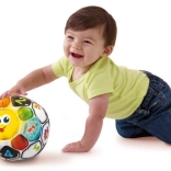 Grâce à ses capacités, la balle peut rouler devant les enfants, ce qui attire leur attention et les motive à observer, ramper et jouer. Ce ballon coloré avec différentes textures et effets sonores développe non seulement la perception sensorielle, mais fournit également une stimulation tactile grâce à son revêtement en peluche douce. Les effets lumineux et sonores, complétés par un visage lumineux et des boutons orange, contribuent à la reconnaissance des couleurs.