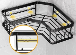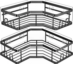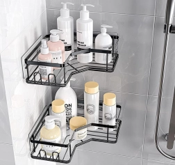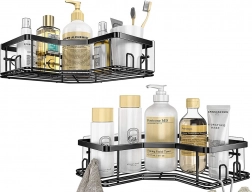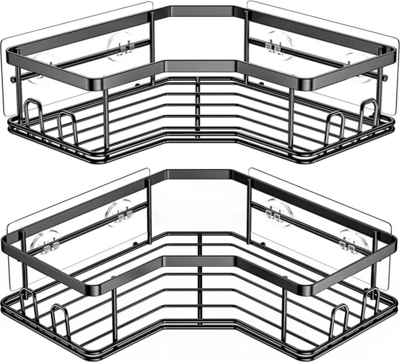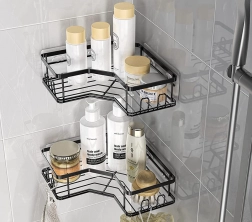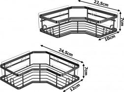 Ensemble de deux étagères d'angle de salle de bain de style industriel, parfait pour ceux qui apprécient le design moderne et la fonctionnalité. Exécution métallique de haute qualité garantit durabilité et surface noire élégante donnant à votre salle de bain un aspect élégant.