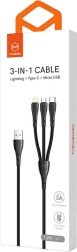 Câble de charge 3‑en‑1 USB vers USB‑C / Lightning / Micro USB 1,2 m noir Mcdodo
