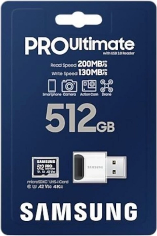 La carte mémoire Samsung microSDXC Pro Ultimate 512 Go est un excellent choix pour les professionnels et les passionnés de technologie recherchant fiabilité et hautes vitesses de transfert dans un format compact.