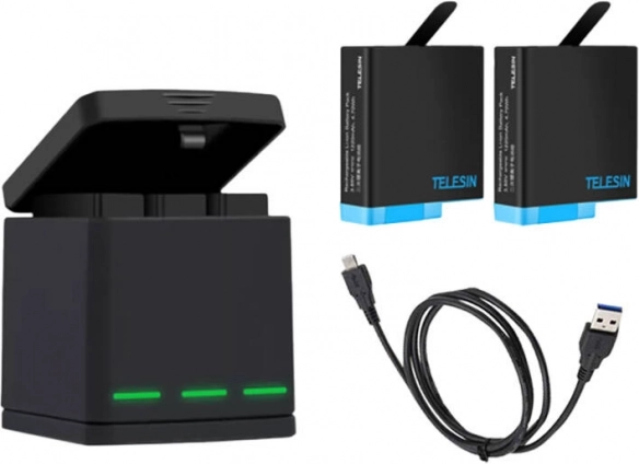 Chargeur Telesin à trois emplacements avec 2 batteries pour GoPro Hero 8