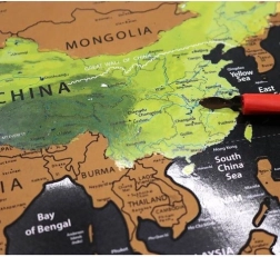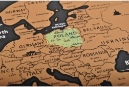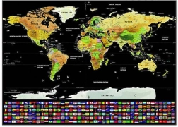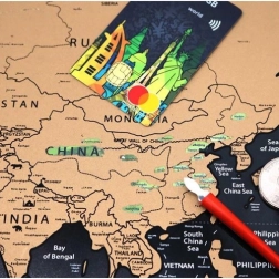 La carte à gratter permet de marquer les pays visités et de révéler les détails géographiques cachés et les drapeaux sous la couche.