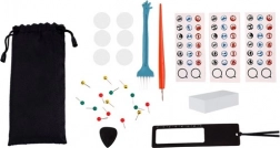 Offre d'accessoires comprend des grattoirs, un pinceau pour enlever les rayures et des autocollants pour la personnalisation. De plus, il y a une règle avec une loupe et des punaises pour accrocher des photos et des notes. Tous les accessoires peuvent être stockés dans le sac pratique inclus dans le paquet.