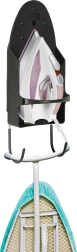 Deux crochets robustes supportent la plupart des planches à repasser, tandis que la partie supérieure accueille en toute sécurité le fer et ses accessoires.
