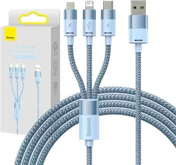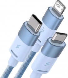 BASEUS StarSpeed est un câble polyvalent 3‑en‑1 avec lequel vous pouvez facilement recharger et connecter presque n’importe quel appareil. Grâce à la combinaison des connecteurs USB‑C, micro USB et Lightning, vous pouvez alimenter jusqu’à trois appareils simultanément et profiter d’un transfert de données stable de 480 Mb/s pour iPhone et autres produits compatibles.
