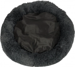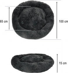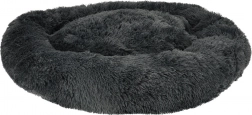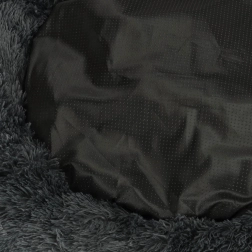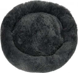 Ce panier en forme de donut, moelleux et gris foncé, procure aux chiens comme aux chats une chaleur accueillante. Sa surface pelucheuse et douce est agréable au toucher et le rembourrage confortable réduit la pression en position allongée. Le rebord surélevé soutient la tête et le cou et crée un sentiment de sécurité, idéal pour les animaux qui aiment se lover en boule.
