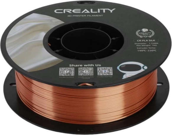 CR-PLA Silk de la marque CREALITY est un choix idéal pour les décorations, figurines et accessoires design, où se distinguent son élégant éclat cuivré et sa surface lisse. L’enroulement soigné assure un déroulement sans problème, sans emmêlement et une impression stable dans la plage de 40–100 mm/s.