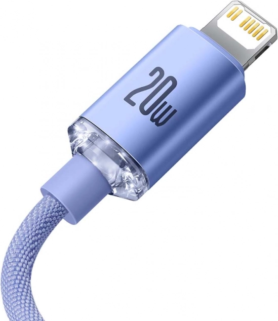 Le câble élégant Baseus Crystal avec connecteurs USB‑C et Lightning offre une charge rapide PD 20 W, un transfert de données jusqu’à 480 Mb/s et un tressage résistant dans un violet raffiné. Grâce à sa longueur de 2 m, à une puce intelligente pour une charge sûre et à des connecteurs en aluminium de qualité, c’est un choix idéal pour les appareils Apple.