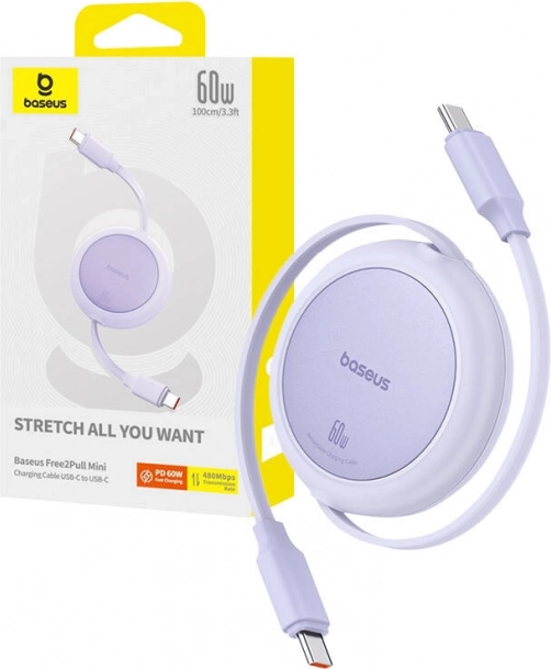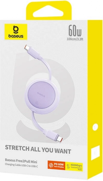 Profitez d’une charge rapide et d’un espace dégagé sans câbles emmêlés. La conception enroulable du Baseus Free2Pull Mini économise de la place dans le sac comme sur le bureau et, grâce à une puissance de PD 60 W, recharge fiablement ordinateurs portables, tablettes et téléphones USB‑C. Le débit de 480 Mb/s assure un transfert rapide de photos et de vidéos.