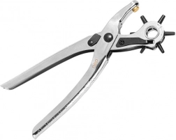 Pince perforatrice polyvalente avec couronne rotative permettant de choisir rapidement le diamètre de trou souhaité: 2 / 2,5 / 3 / 3,5 / 4 / 4,5 mm. Idéale pour l’ajustement des ceintures en cuir, sacoches, colliers, ainsi que pour les textiles et matériaux plus fins. La conception ergonomique assure un perçage confortable et précis sans effilochage des bords.
