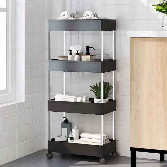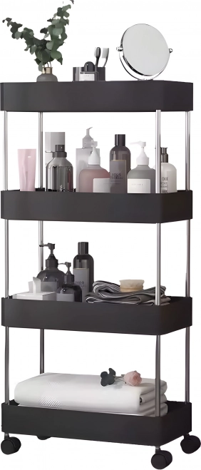 Étagère de salle de bain en plastique sur roulettes avec 4 étagères ModernHome, noire