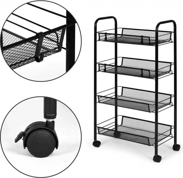 Étagère métallique mobile ModernHome sur roulettes avec 4 paniers