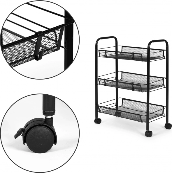 Un assistant pratique et stylé pour chaque foyer. Les proportions étroites de l’étagère permettent d’exploiter les espaces moins accessibles, tandis que trois paniers-étagères spacieux accueillent cosmétiques, produits d’entretien, épices, vaisselle ou fournitures de bureau. Métal résistant garantissant stabilité et longue durée de vie.