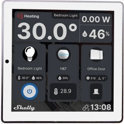 Shelly Wall Display est un panneau de contrôle central pour maison intelligente avec écran couleur 4" et connectivité Wi‑Fi/Bluetooth. Il permet de régler rapidement la température, l’humidité et l’éclairage, tout en affichant clairement les données clés du domicile. Grâce à la fonction Shelly Smart Control, vous surveillez facilement la consommation d’énergie et identifiez les dépenses inutiles.