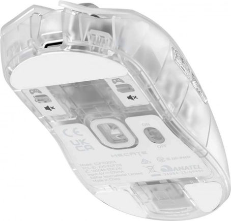 La souris prend en charge la bande 2,4 GHz à très faible latence, le Bluetooth et la connexion filaire USB‑C. La batterie de 300 mAh offre environ 70 heures d’utilisation. Le double système de switches HUANO permet d’alterner entre un clic gaming marqué (jusqu’à 80 millions d’activations) et un mode silencieux (jusqu’à 10 millions). Dans le logiciel HECATE Connect, réglez facilement le DPI, les macros et les fonctions des boutons.