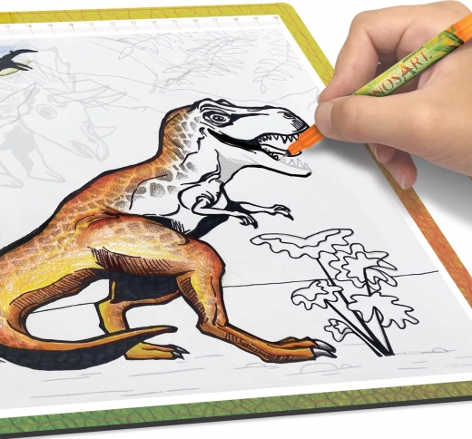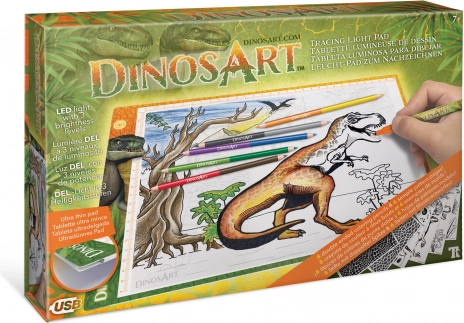 Tablette de dessin DinosArt : Lumière LED, support ultra-fin, idéale pour les petits artistes.