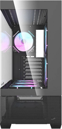 Le boîtier est prêt pour un refroidissement exigeant : inclus 6× DM12F 120 mm et au total 7 ventilateurs ARGB, prise en charge des radiateurs 240/360 mm et grille métallique pour une meilleure dissipation thermique. Grâce à une architecture interne intelligente, vous installez facilement une VGA jusqu’à 425 mm, un ventirad CPU jusqu’à 170 mm, 2× SSD et 2× HDD.