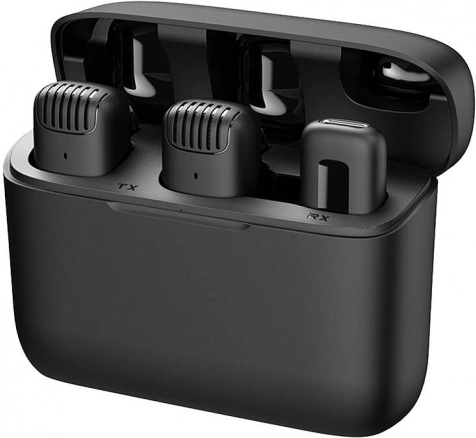 Microphones cravate sans fil APEXEL APL-MIC008 avec étui de charge (USB‑C), 2 pièces
