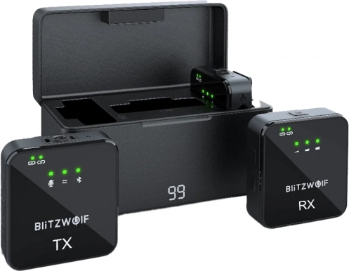 Microphone sans fil BLITZWOLF BW‑SX63 avec étui de charge (noir)