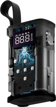 L’appareil est équipé d’une batterie lithium‑ion puissante de 2000 mAh qui permet, une fois complètement chargée, de gonfler jusqu’à 10 pneus. Grâce à sa large plage de températures de fonctionnement, il est idéal par tous les temps.