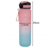 Surveillez votre hydratation toute la journée. La gourde combine une capacité de 1 L avec une graduation en ml (jusqu’à 1000 ml) et en oz (jusqu’à 32 oz) ainsi qu’un planning horaire du matin au soir, pour savoir exactement combien boire et quand. Des phrases motivantes vous soutiennent au travail, au sport et en déplacement.