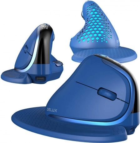 La DELUX M618XSD est une souris verticale conçue pour une prise naturelle et la réduction des tensions des tendons. L’écran OLED intégré affiche l’état de la batterie, le mode de connexion et le DPI actuel (600–4000). Grâce à sa batterie de 1000 mAh, elle tient jusqu’à 2 semaines d’usage courant et se recharge via USB‑C.