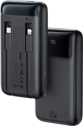Deux ports de sortie (USB-A, USB-C) et deux câbles intégrés (USB-C et Lightning) permettent une charge simultanée et efficace de plusieurs appareils, sans chercher de câbles supplémentaires.