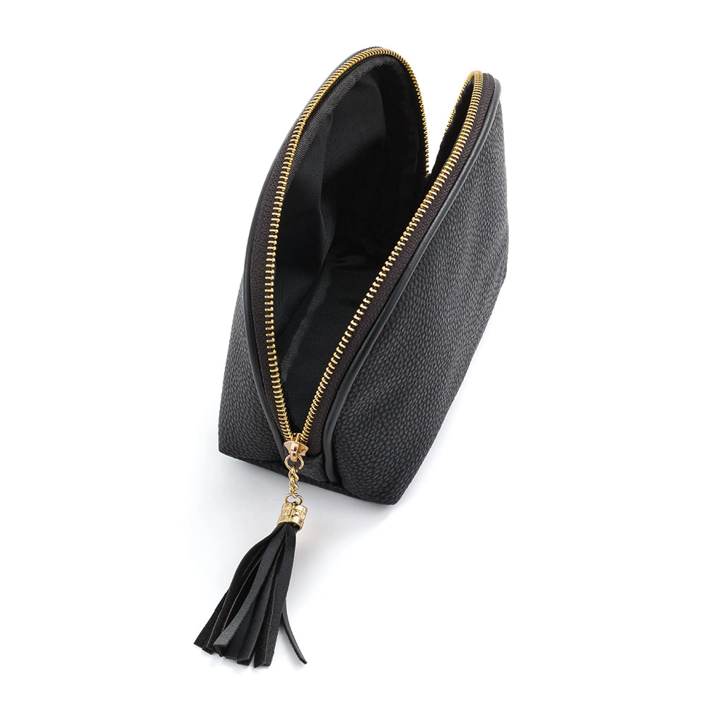 Trousse de toilette en cuir noir PLUS est la solution idéale pour ranger vos articles de toilette et cosmétiques de petite taille lors de vos voyages.