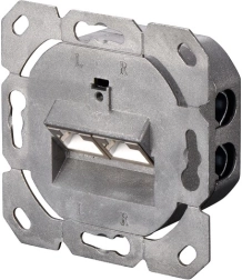 La prise dispose de deux ports RJ45 de type 8P8C, ce qui permet une connexion simple et flexible aux équipements réseau. Le raccordement LSA+ codé par couleurs selon la norme EIA/TIA 568B facilite l’orientation lors de l’installation du câblage.