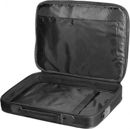 Élégante sacoche noire pour ordinateur portable 15,4–15,6 pouces offrant une protection rembourrée, une organisation claire et un matériau textile résistant avec fermeture éclair. Idéale pour les déplacements et le bureau.