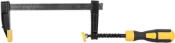 Ce serre-joint professionnel est fabriqué en acier A3, ce qui assure sa solidité et sa durabilité. Il est idéal pour les travaux du bois et de construction nécessitant précision et stabilité. Sa poignée noire et jaune offre une prise en main confortable.