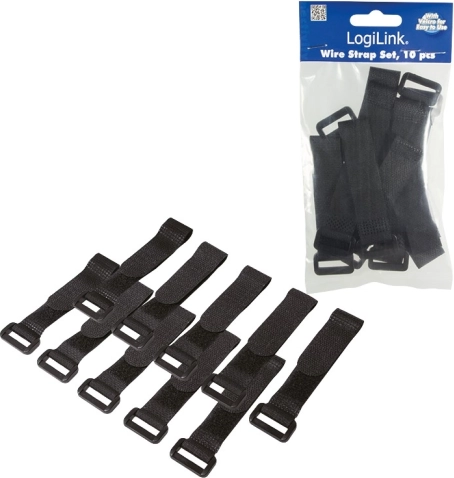 Organisateur de câbles avec bandes auto-agrippantes, noir, 15 cm, lot de 10