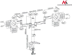 Le support double moniteur de la marque Maclean offre une option de montage universelle pour des moniteurs avec une diagonale de 13" à 27", à condition que leur poids ne dépasse pas 8 kg. Le support convient à différents modèles de moniteurs et téléviseurs LCD ou LED, tout en prenant en charge les standards VESA.