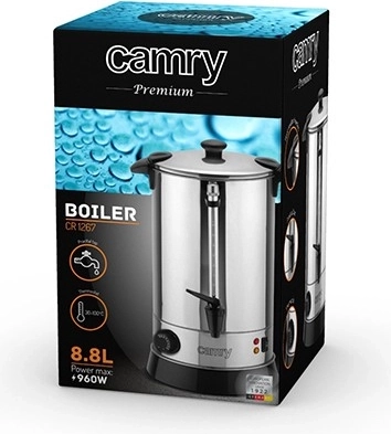 Le distributeur d’eau chaude CR 1267 est fabriqué en acier inoxydable et permet de chauffer l’eau ainsi que de maintenir sa température. Il est indispensable lors des conférences pendant les pauses café, ainsi que lors de diverses rencontres commerciales, scientifiques et sociales. Grâce à sa mobilité, il est idéal pour la préparation d’événements. Le refroidisseur d’eau Camry est facile et confortable à utiliser et garantit également la sécurité d’utilisation (poignées et robinet qui ne surchauffent pas).