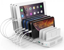 Mettez de l’ordre dans la recharge de tous vos appareils en un seul endroit. Cette station de charge compacte offre jusqu’à 10 ports USB, dont deux avec QC 3.0 pour la charge rapide, une puissance totale de 96 W, une gestion intelligente BC 1.2 et des cloisons réglables pour ranger clairement téléphones et tablettes. Idéale pour la maison et le bureau.