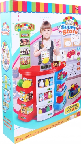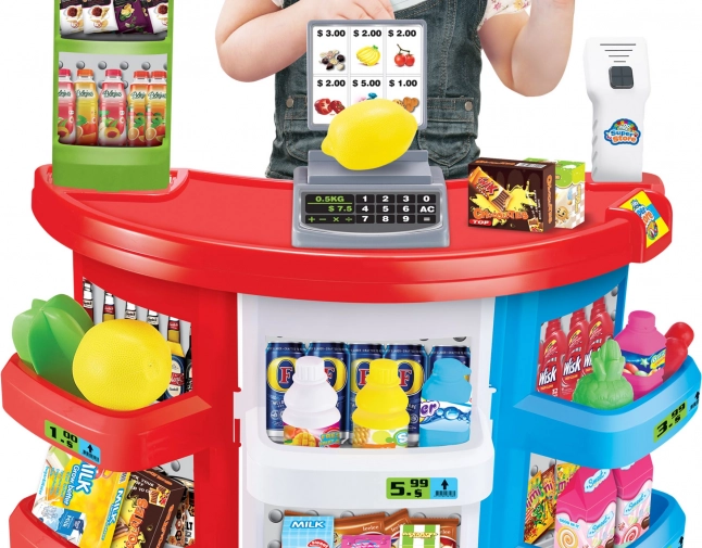 Les enfants peuvent réapprovisionner les produits, scanner les articles et exercer les chiffres ainsi que la communication. Sa structure stable et ses accessoires colorés garantissent un jeu durable et sûr. Les dimensions de l’ensemble sont de 51 × 27 × 78 cm. Tout le nécessaire est inclus dans la boîte – il suffit d’insérer les piles pour commencer à jouer.