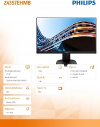 Moniteur Philips de 23,8 pouces offrant une image nette grâce à la technologie IPS. Il permet des options de connexion flexibles avec HDMI et dispose de la fonction pivot pour une rotation confortable de l’écran. Idéal aussi pour le divertissement multimédia grâce aux haut-parleurs intégrés.