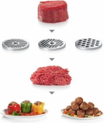 - Les fonctions du hachoir (plus de 10 fonctions) permettent de hacher la viande et le poisson, mais aussi de râper des légumes, des fruits, des fromages et plus encore